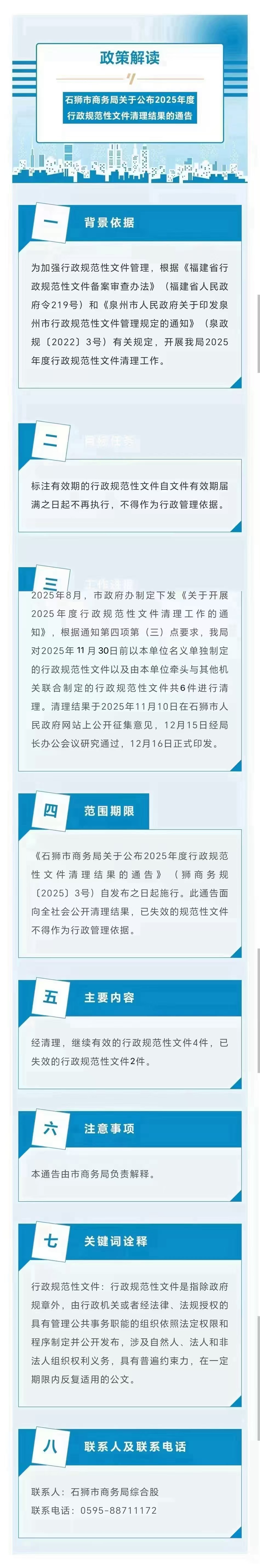 【图文解读】《石狮市商务局关于公布2025年度行政规范性文件清理结果的通告》政策解读