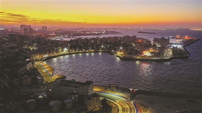 黄昏时分,夕阳为天际染上暖黄。公路上的路灯亮起,连成一条金色光带,与渐暗的天色相映成趣。祥芝国家中心渔港内,渔船上的灯火点点亮起,与公路上流动的车灯光轨交织成网,光影错落间,山海、公路、渔港融为一体,勾勒出一幅静谧而温暖的滨海夜曲图。(记者 颜华杰)