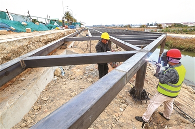 本报讯 1月22日,记者在石狮锦江外线湿地公园段看到,作为“石狮市一县一溪一特色”乡村振兴精准提升(一期)项目——蚶江沟基础设施与生态整治建设项目的关键节点,两个“景观平台”建设现场一片繁忙。据了解,该项目包括渠道两侧生态整治、基础设施改造,将新增服务驿站、景观平台、非机动车位、蚶江沟护坡彩绘、沿机耕道休憩平台、景观打卡小品等。该工程建成后,将显著提升锦江外线湿地公园段的旅游服务承载力与游客体验感。
