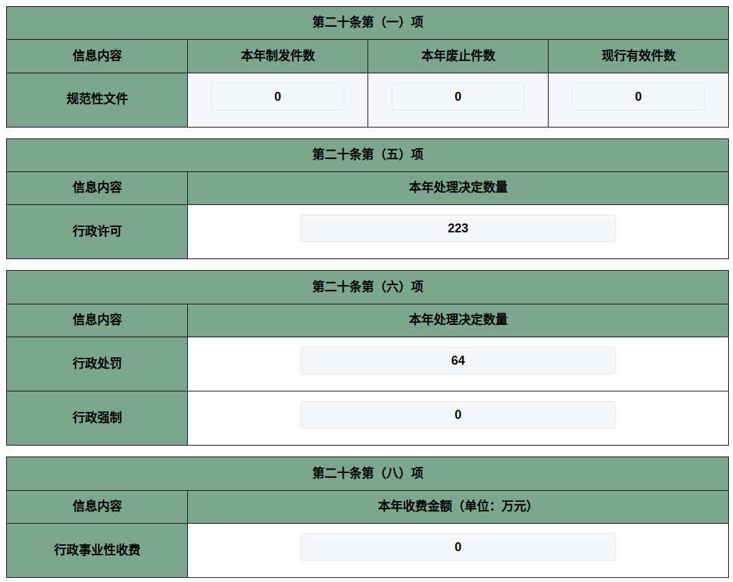 (一)主动公开方面。一是做好主动公开政府信息工作。2024年度主动公开政府信息10条,其中主动公开规范性文件类信息0条,其他类信息10条,均通过“石狮市人民政府信息公开网”予以公开。二是做好行政审批、执法双公示工作。2024年度办理行政许可事项223件,已办结行政处罚案件64起,均按照要求做好整理报送、网上公示等工作。