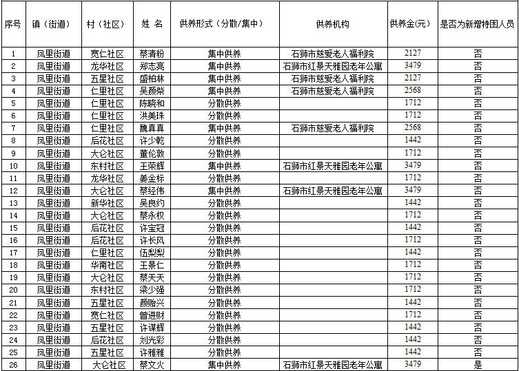 - 标题:【临时救助】凤里街道2025年8月特困人员保障金花名册