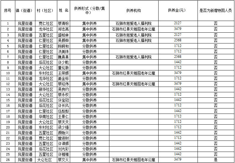 - 标题:【临时救助】凤里街道2025年10月特困人员保障金花名册