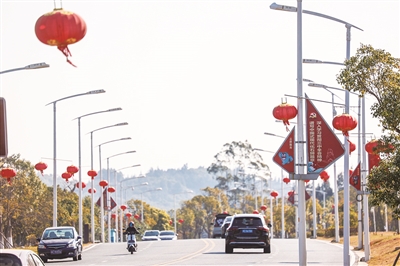 在峡谷旅游路、石狮高速路口、水头外线等城市主干道也增设了不少“福”文化景观小品,既有传统韵味又彰显新年氛围。如,石狮高速路口的广告牌换上了红色“新衣”,上面写着“祝全市人民新春快乐”;各主干道的花箱也增植了不少鲜艳的花朵,渲染着节日的隆重与喜庆。