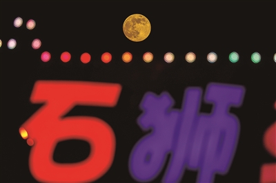 上图为12月4日晚,记者摄于石狮市学府路的月亮(记者 颜华杰 施秋凉)
