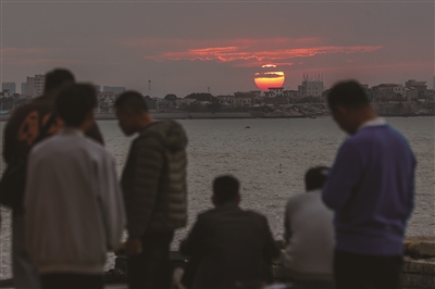 日前,在林銮渡码头的海面之上,夕阳贴着岸线缓缓沉降,绯红霞光晕染天幕,与古码头的礁石、千年海丝遗迹相映,引得现场市民、游客纷纷举起相机或手机,定格这一兼具历史质感与自然柔美的时刻。