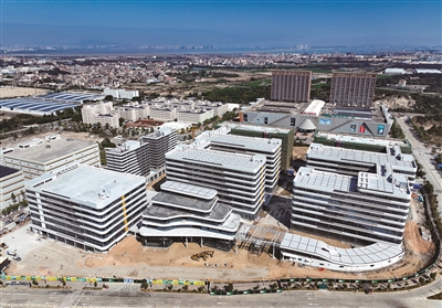 本报讯 近日,站在高处看,位于石狮港口大道的卡宾新质产业园数幢产业高楼主体建筑在安全防护网拆除后,以崭新面貌亮相。作为福建省首个第五代产业园,该项目在蚶江镇及市相关部门的大力推动下,正全速推进建设,目前多项工程已取得实质性进展,整体建设进入收官阶段。