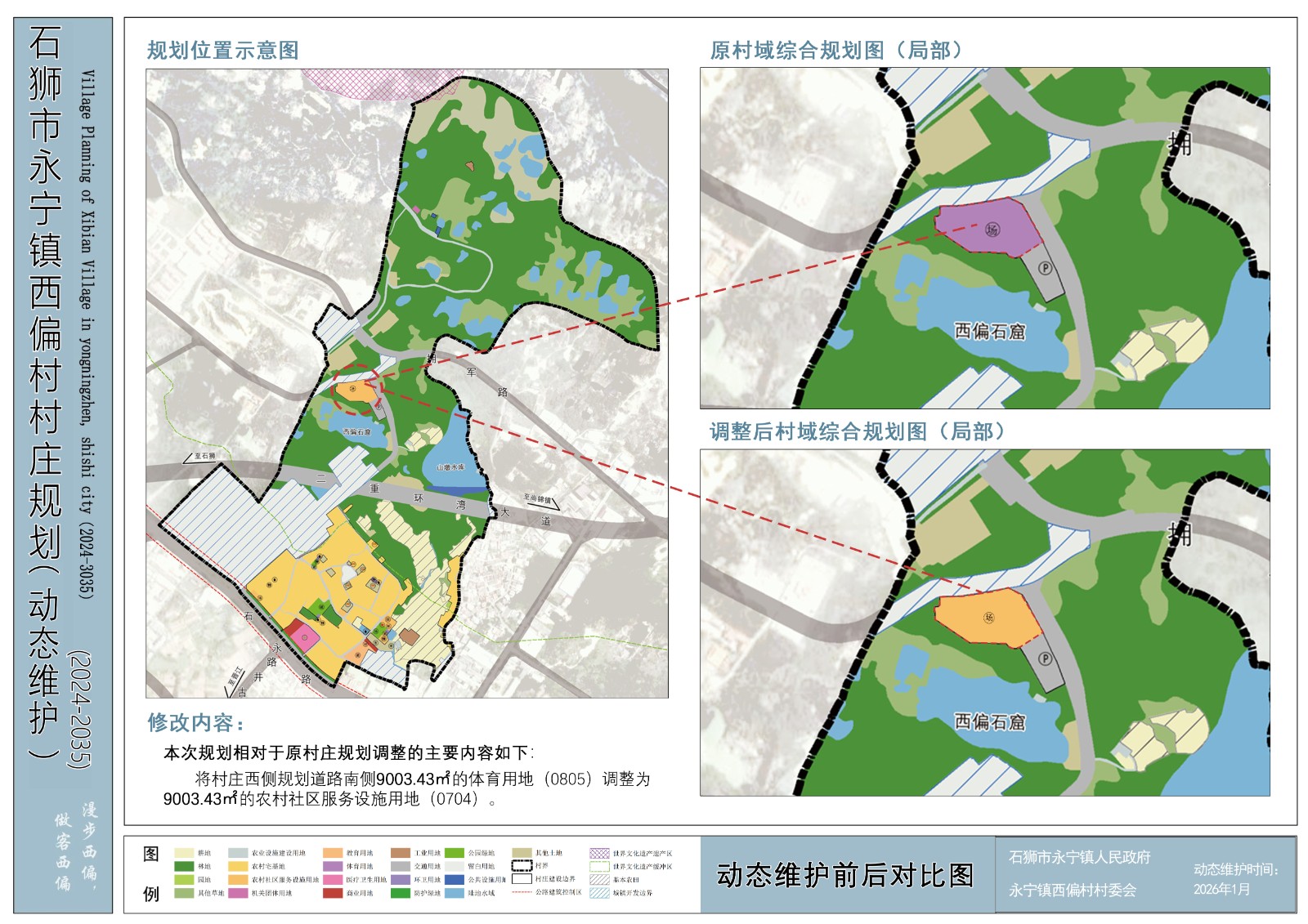 2026年3月9日,《石狮市永宁镇西偏村村庄规划(2024-2035年)(动态维护)》经石狮市自然资源局组织专家技术审查通过,根据《中华人民共和国城乡规划法》等相关法律法规规定,现将该规划成果及动态维护前后对比图一并予以公布,主要内容及图件附后。
