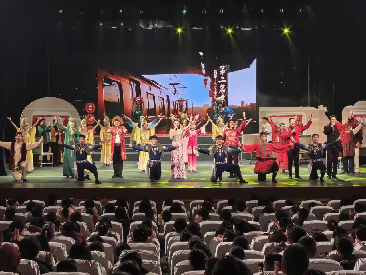 舞台上,《半个月亮爬上来》《花儿为什么这样红》《我的故乡是一个馕》等经典曲目轮番上演,非遗元素与现代舞台艺术交融,生动勾勒出昌吉的地域特色与人文底蕴;情景讲述再现泉昌间的援疆故事,更有石狮非遗木偶剧惊艳登场,艺人们指尖翻飞操控木偶,伴着欢快节奏与昌吉表演团队同台互动,木偶的俏皮灵动与异域歌舞的热情奔放为演出带来别样火花,让“山海同心”的情谊直抵人心,台下观众不时报以热烈掌声。值得一提的是,音乐厅舞台前的昌吉文旅特色产品展销区同样热闹——昌吉表演团队在展销区旁带来灵动的歌舞互动,伴着“欢迎石狮的朋友们”的亲切问候吸引市民打卡、驻足品尝,为两地的双向奔赴写下生动注脚。