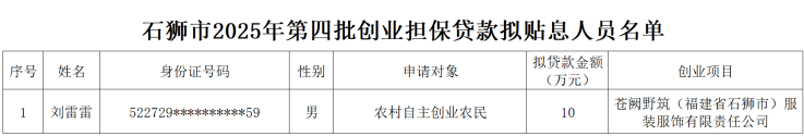 附件:石狮市2025年第4批创业担保贷款拟贴息人员名单
