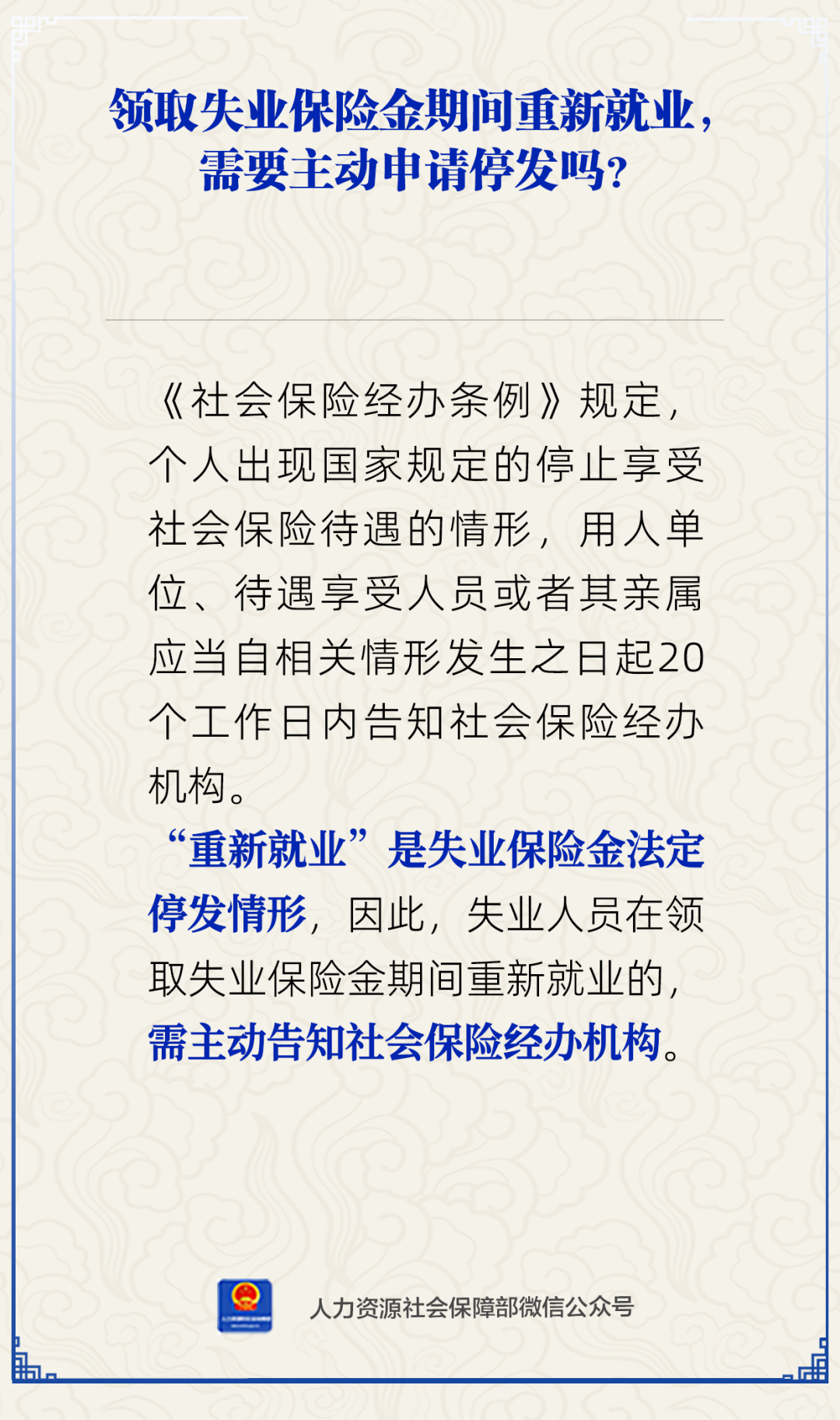 【失业保险】领取失业保险金期间重新就业,需要主动申请停发吗?